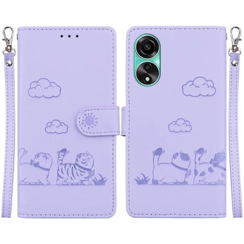 Funda de Cuero Rfid con Diseño de Gatos para Oppo A78 4G (Morada)