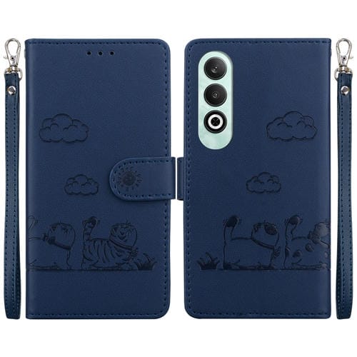 Funda de Cuero Rfid con Diseño de Gatos para Oppo K12 (Azul)