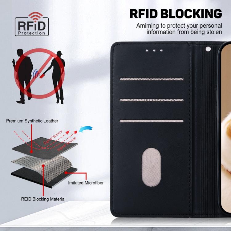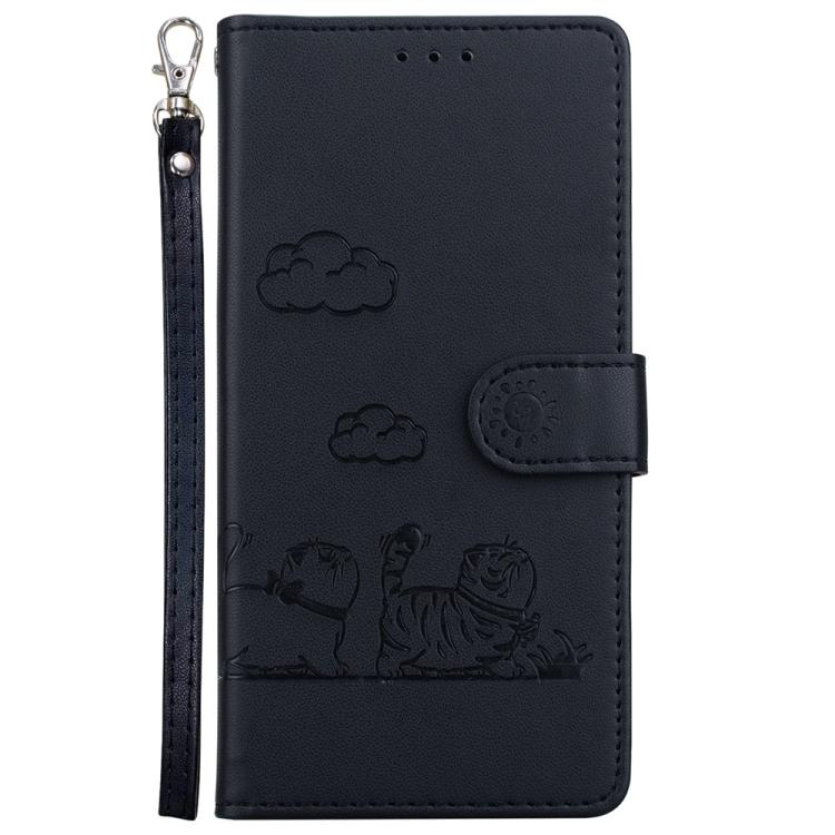 Funda de cuero RFID con diseño de gatos para Redmi A5 4G (171,7 mm) (negro)
