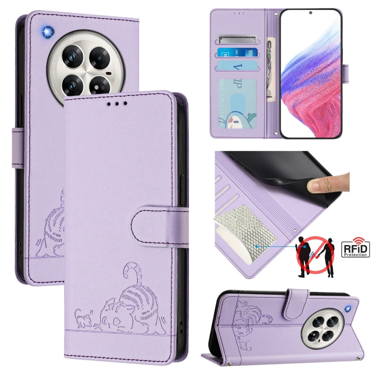 Funda de Cuero Rfid para Infinix Zero 40 4G/5G con Estampado de Rata y Gato y Cordón (Morado)