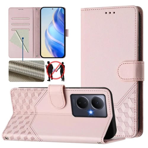 Funda de Cuero Rfid con Relieve de Panal Global para Vivo Y78+ 5G / Y78 5G (Rosa)