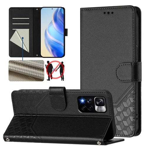 Funda de Cuero Rfid con Relieve de Panal para Redmi Note 11 Pro+ 5G Europa (Negro)
