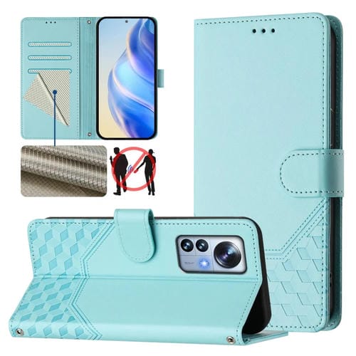 Funda de Cuero Rfid con Relieve de Panal para Xiaomi 12 Pro/12S Pro (Verde Menta)