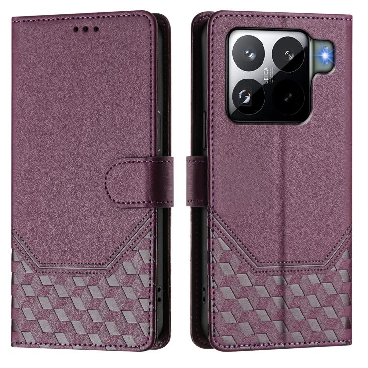 Funda de cuero RFID con relieve de panal para Xiaomi 15S Pro 5G (violeta)