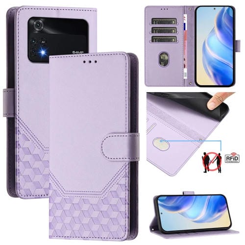 Funda de Cuero Rfid con Relieve de Panal para Xiaomi Poco M4 Pro 4G (Morado Claro)