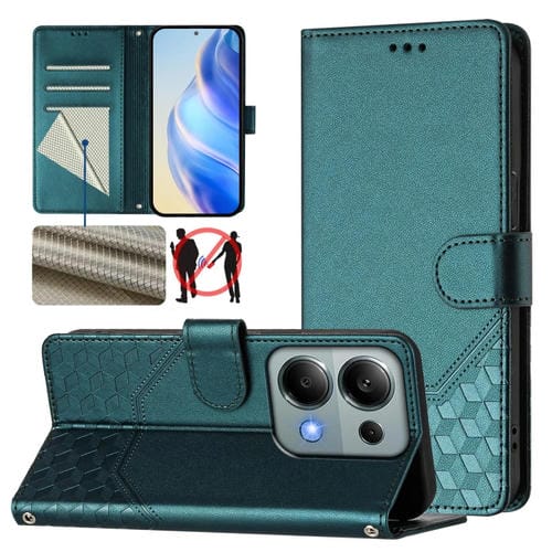 Funda de Cuero Rfid con Relieve de Panal para Xiaomi Poco M6 Pro 4G (Verde Pavo Real)