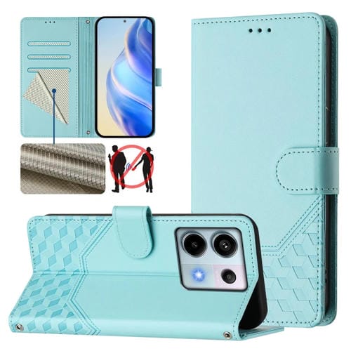 Funda de Cuero Rfid con Relieve de Panal para Xiaomi Poco X6 5G (Verde Menta)