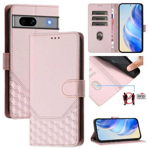 Funda de Cuero Rfid con Relieve en Panal para Google Pixel 7A (Rosa)