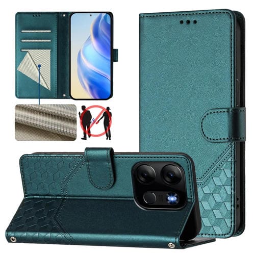 Funda de Cuero Rfid con Relieve en Panal para Tecno Pop 7/Pop 7 Pro (Verde Pavo Real)