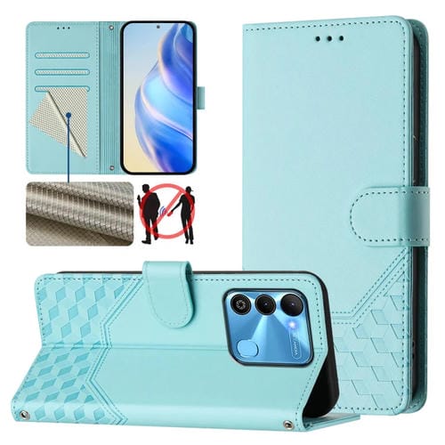 Funda de Cuero Rfid con Relieve en Panal para Tecno Spark Go 2022 y Spark 8C (Verde Menta)