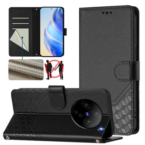 Funda de Cuero Rfid con Relieve En Panal para Vivo X100S 5G (Negra)