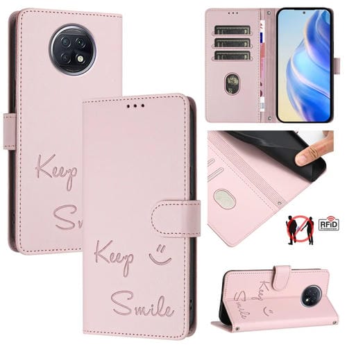 Funda de Cuero Rfid con Relieve Global Smile para Redmi Note 9T (Rosa)