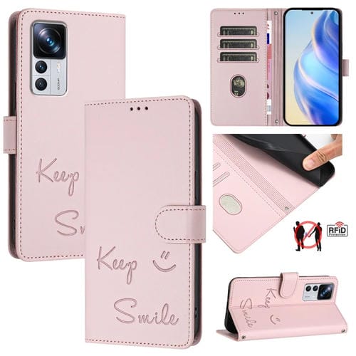 Funda de Cuero Rfid con Relieve Smile para Redmi K50 Ultra (Rosa)