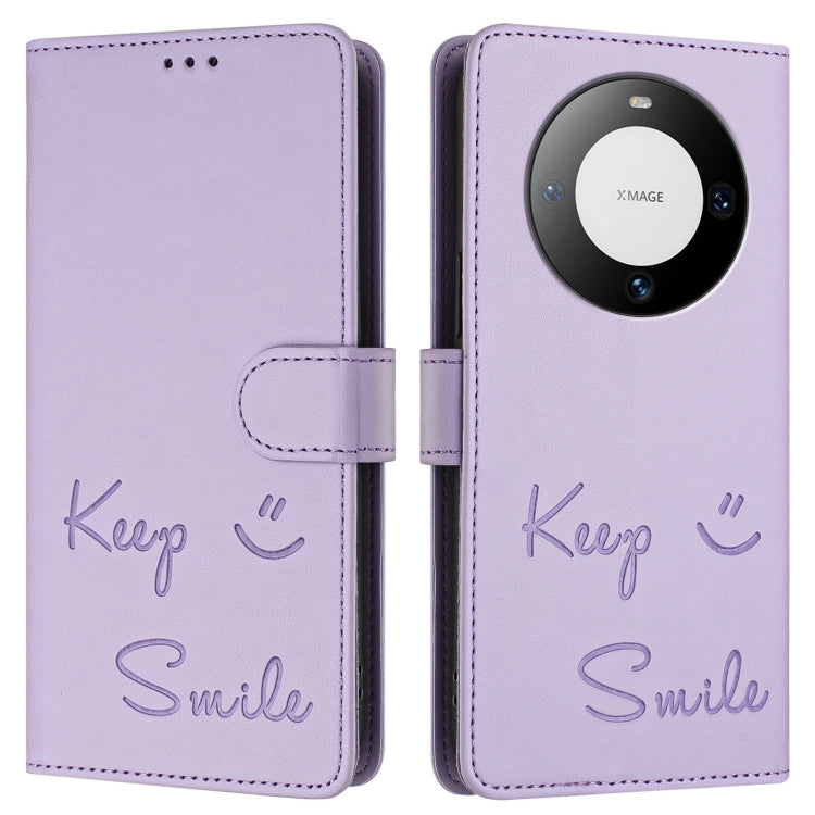 Funda de Cuero Rfid con Relieve Sonriente para Huawei Mate 60 (Morado Claro)