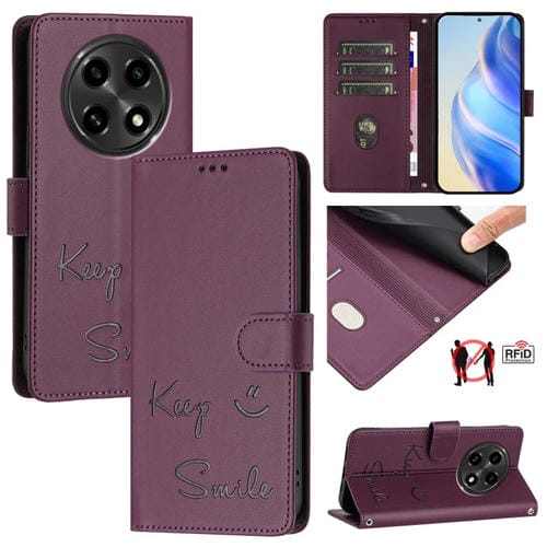 Funda de Cuero Rfid con Relieve Sonriente para Oppo A2 Pro 5G (Violeta)