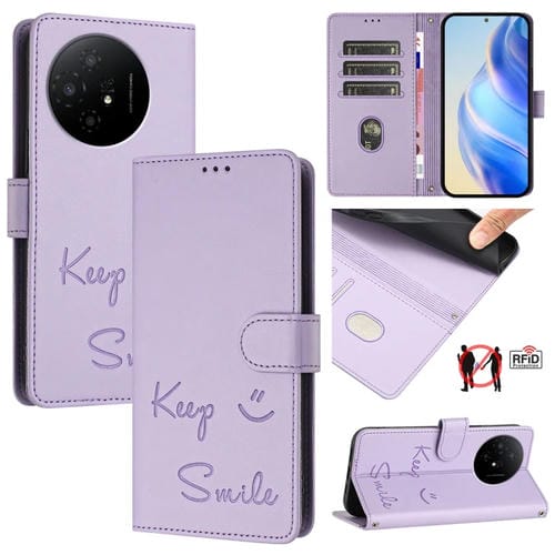 Funda de Cuero Rfid para TCL 50 Xl 5G con Relieve Sonriente (Morado Claro)