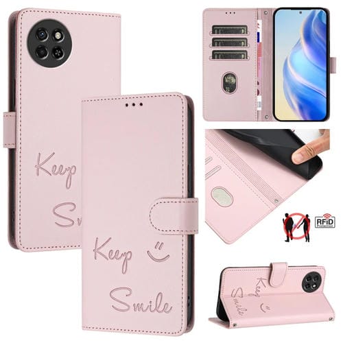 Funda de Cuero Rfid con Relieve Sonriente para Teléfono Itel S23 S665L (Rosa)