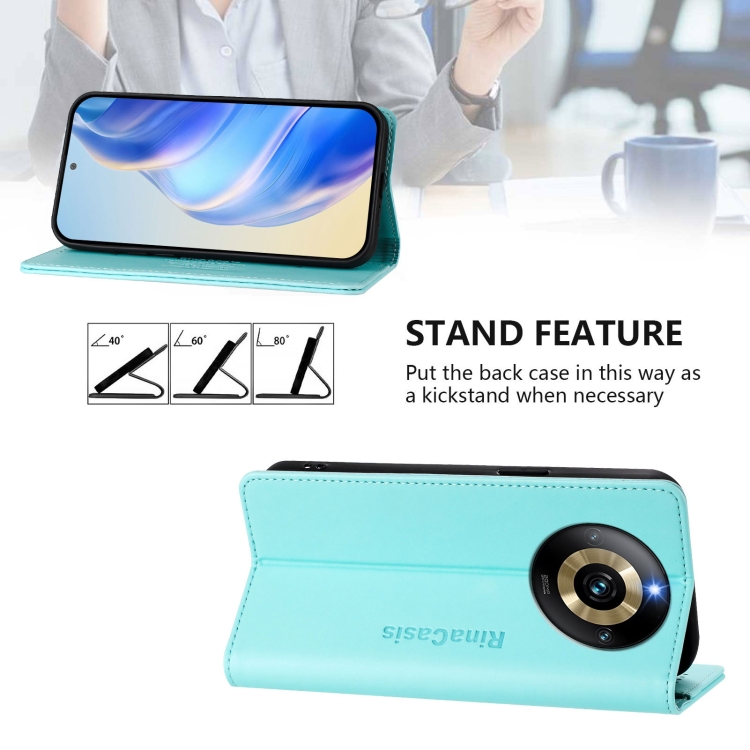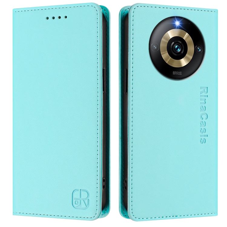 Funda de Cuero Rfid con Succión Magnética y Doble Pliegue para Realme Narzo 60 Pro Rc01 (Verde Menta)