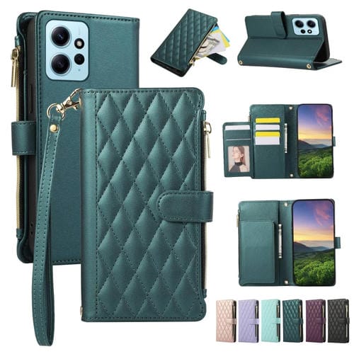 Funda de Cuero Tipo Billetera con Cremallera Rombal Global para Redmi Note 12 4G (Verde)