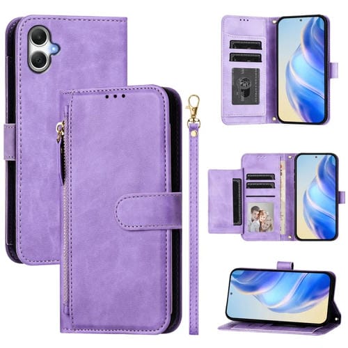Funda Billetera Cuero Samsung Galaxy A06 Cremallera Ranuras (Morado)