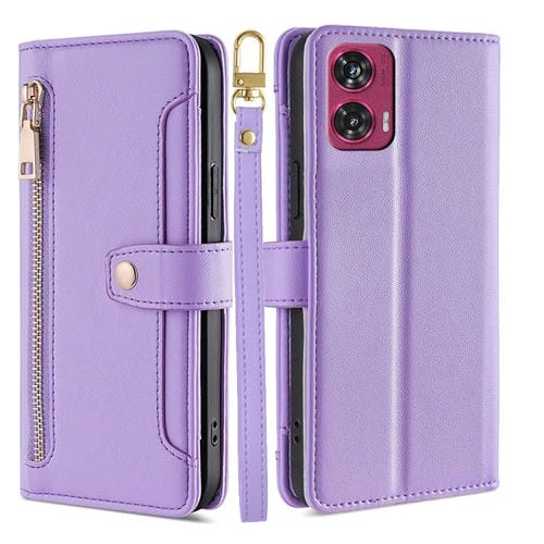 Funda de Cuero Tipo Billetera con Cremallera y Textura de Oveja para Motorola Edge 50 Fusion 5G (Morado)
