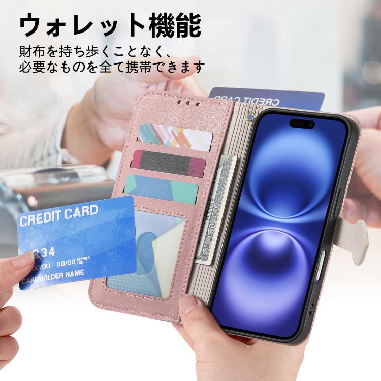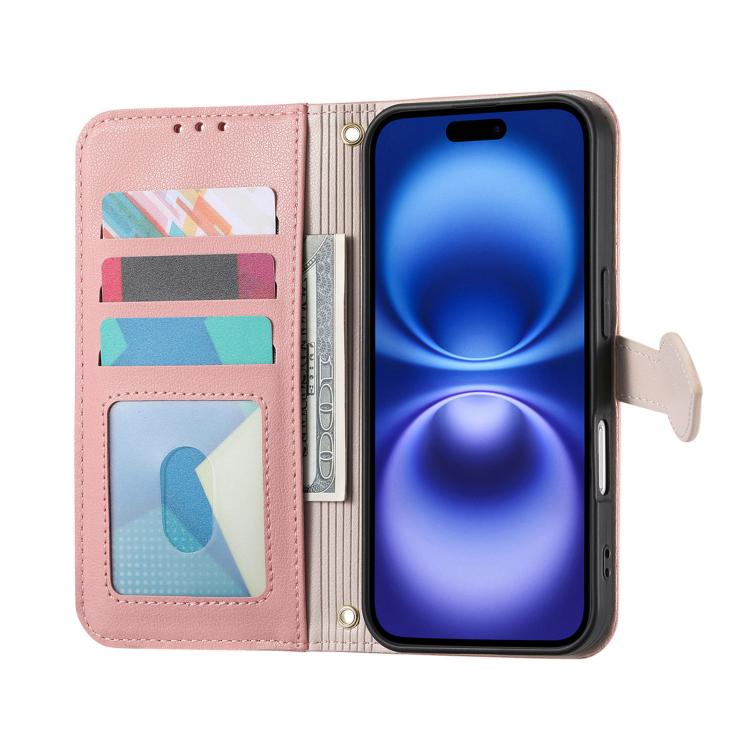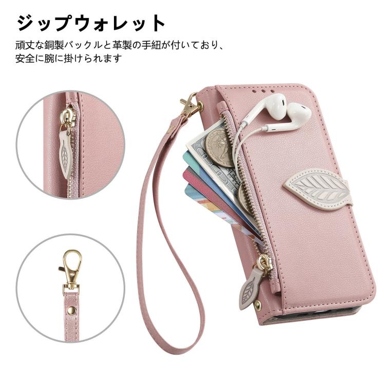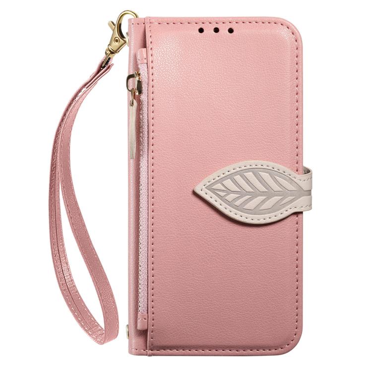 Funda de cuero tipo billetera con hebilla de hoja y cremallera para iPhone 17 (rosa)