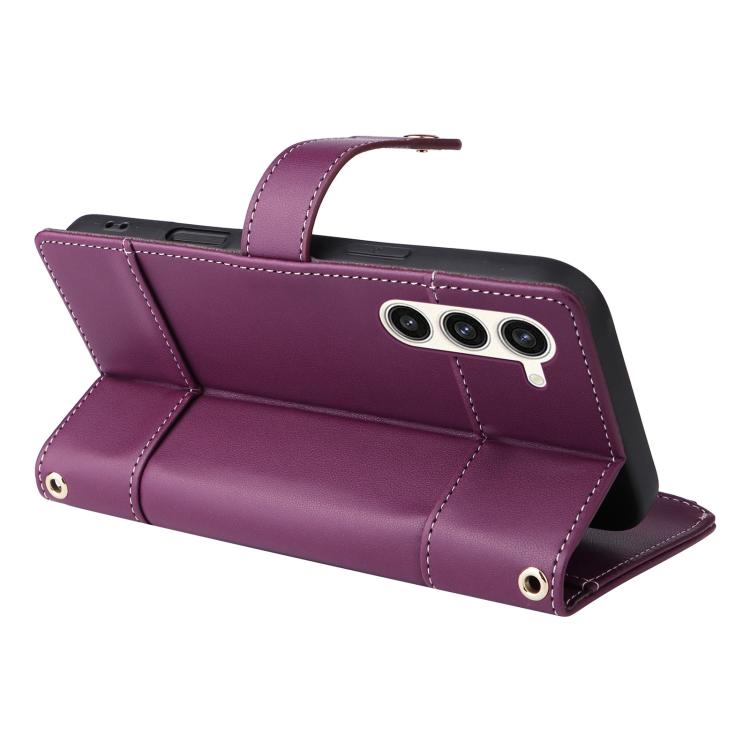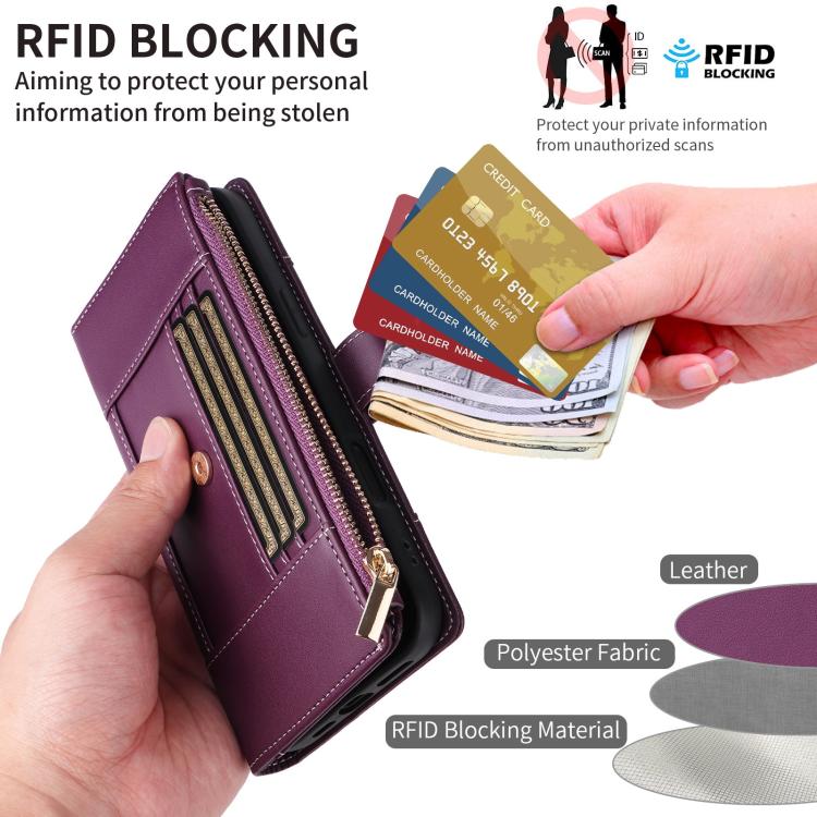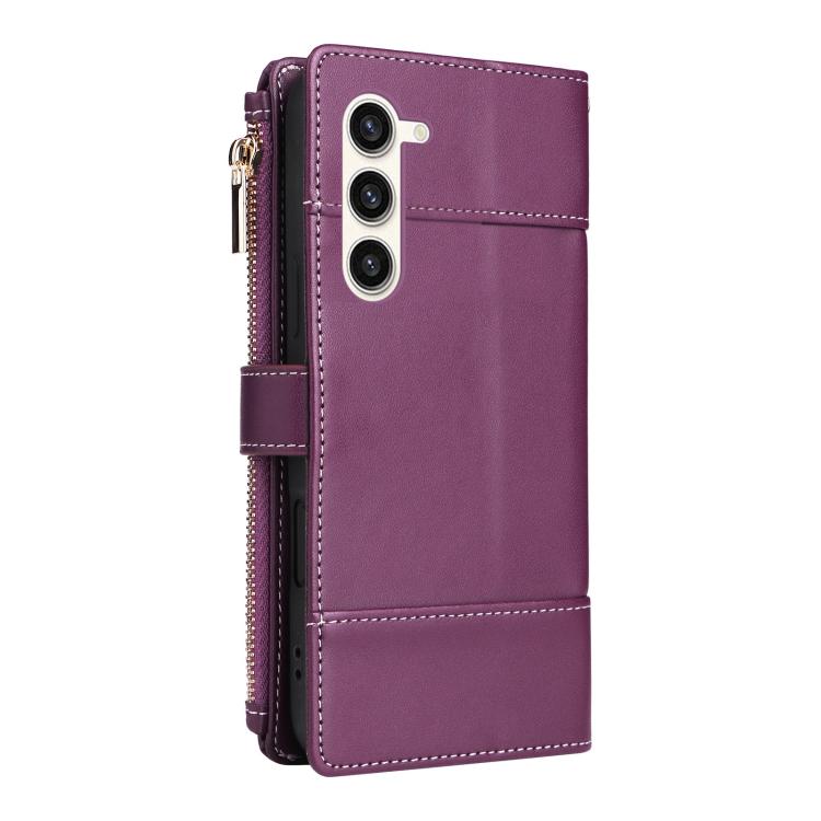 Funda de cuero tipo cartera con cremallera y bloqueo RFID para Samsung Galaxy S23+ 5G (morado)