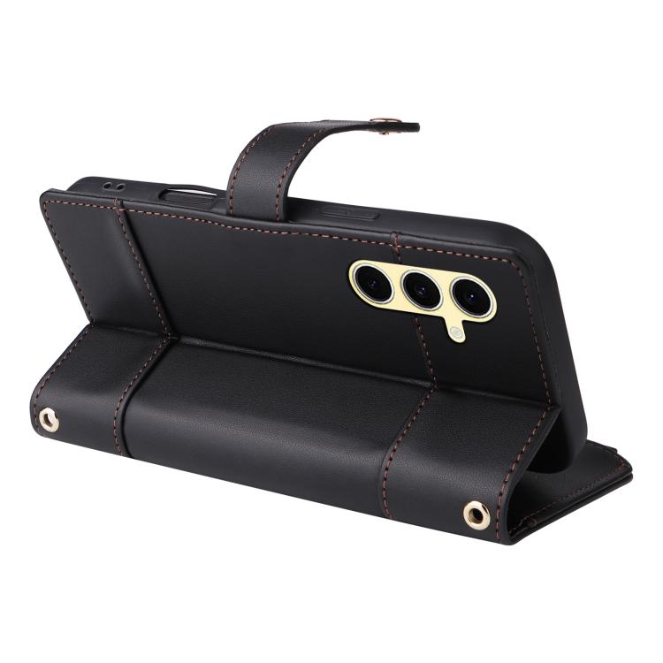 Funda de cuero tipo cartera con cremallera y bloqueo RFID para Samsung Galaxy S24+/S25+ 5G (negra)