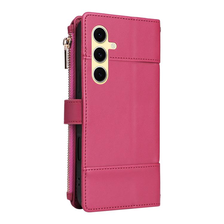 Funda de cuero tipo cartera con cremallera y bloqueo RFID para Samsung Galaxy S24+/S25+ 5G (roja)