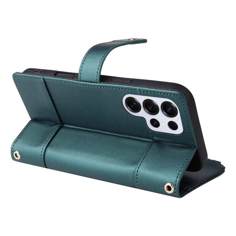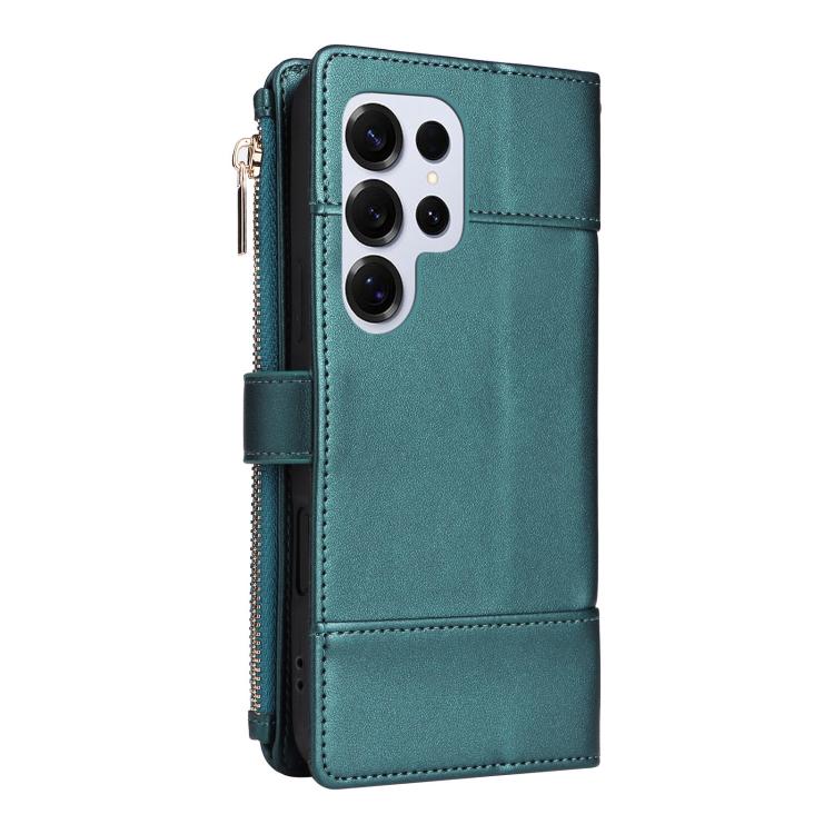 Funda de cuero tipo cartera con cremallera y bloqueo RFID para Samsung Galaxy S25 Ultra 5G (verde)