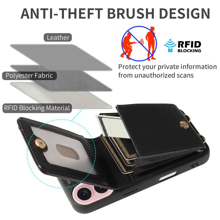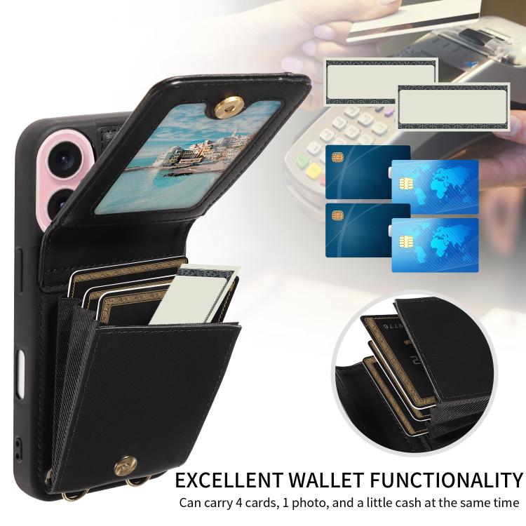 Funda de cuero tipo cartera con cremallera y cordón para iPhone 17 (negra)