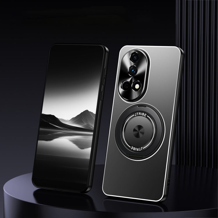 Funda de Metal Esmerilado con Soporte Giratorio para Huawei Nova 12 Pro (Negro)