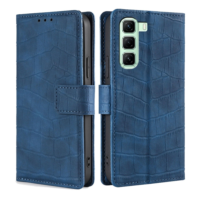 Funda de Piel para Infinix Hot 50 5G con Cierre Magnético y Diseño Cocodrilo (Azul)