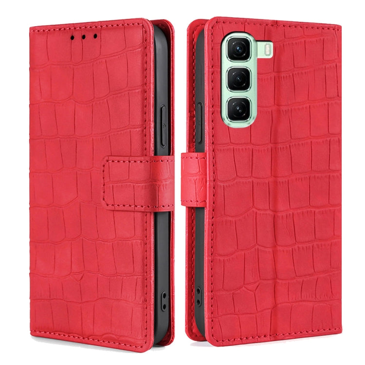 Funda de Piel con Cierre Magnético y Diseño de Cocodrilo para Infinix Hot 50 5G (Rojo)