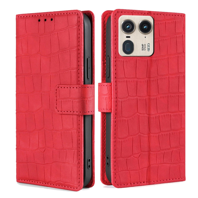 Funda de Piel con Cierre Magnético y Tacto de Cocodrilo para Motorola Edge 50 Ultra (Rojo)