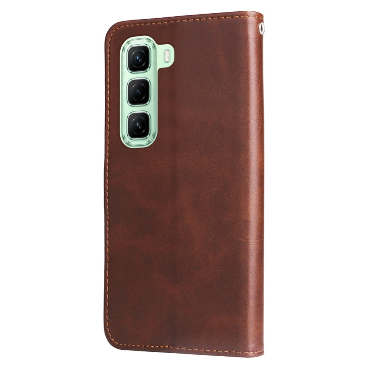 Funda de Piel con Cremallera y Textura de Becerro para Infinix Hot 50 5G (Marrón)