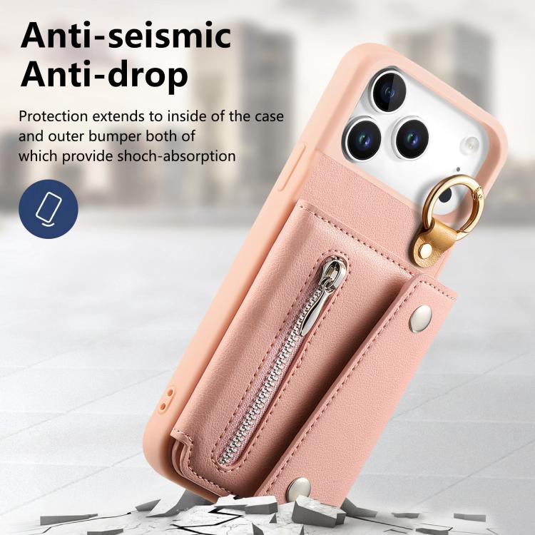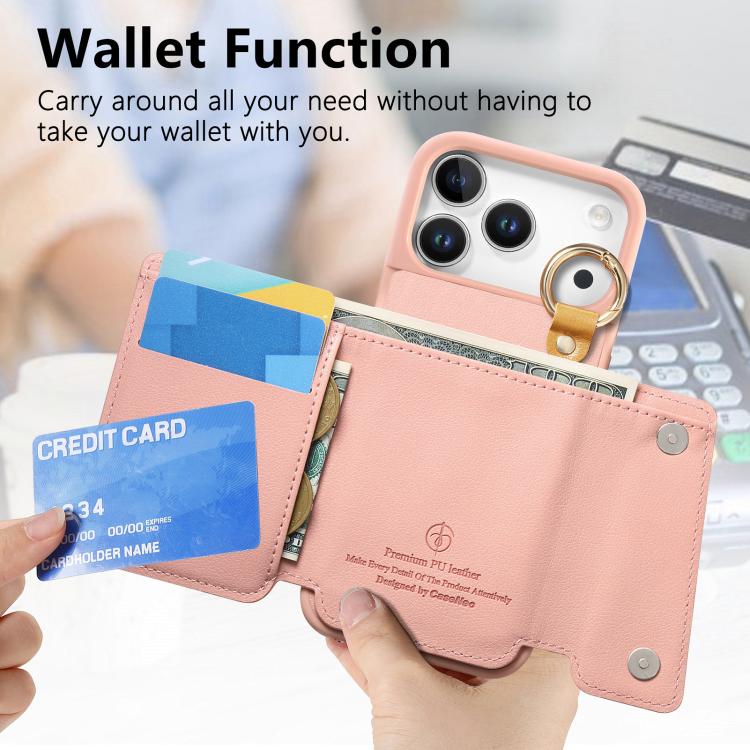 Funda de piel con hebilla en forma de D para iPhone 17 Pro Max (rosa)