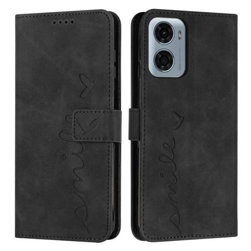 Funda de Piel con Relieve de Corazón para Motorola Moto G05 con Cordón Largo (Negro)