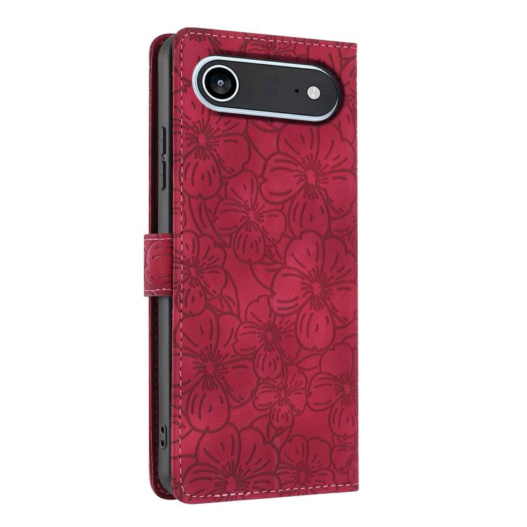 Funda de piel con relieve de flores de cerezo para iPhone Air (roja)