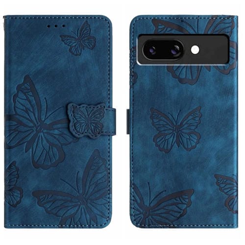 Funda de Piel con Relieve de Mariposa para Google Pixel 9A (Azul)