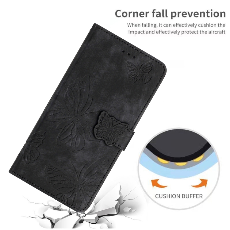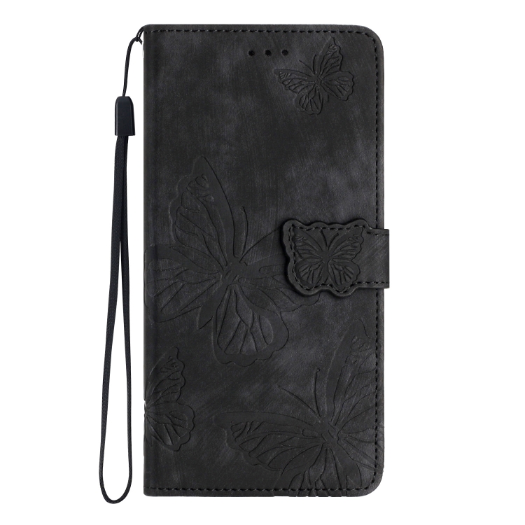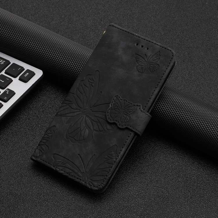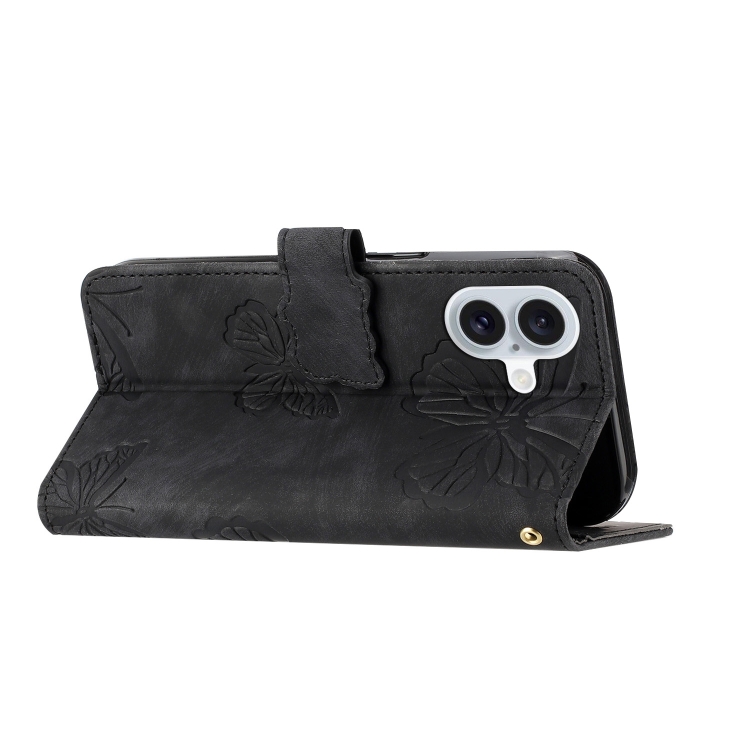 Funda para iPhone 16 de Piel con Relieve de Mariposa (Negra)