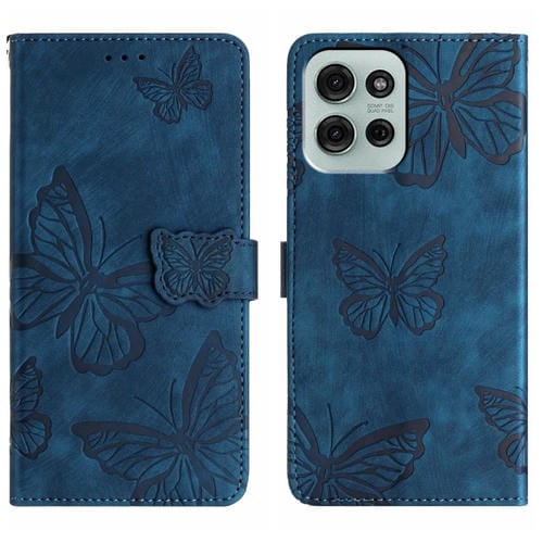 Funda de Piel con Relieve de Mariposa para Motorola Moto G75 (Azul)