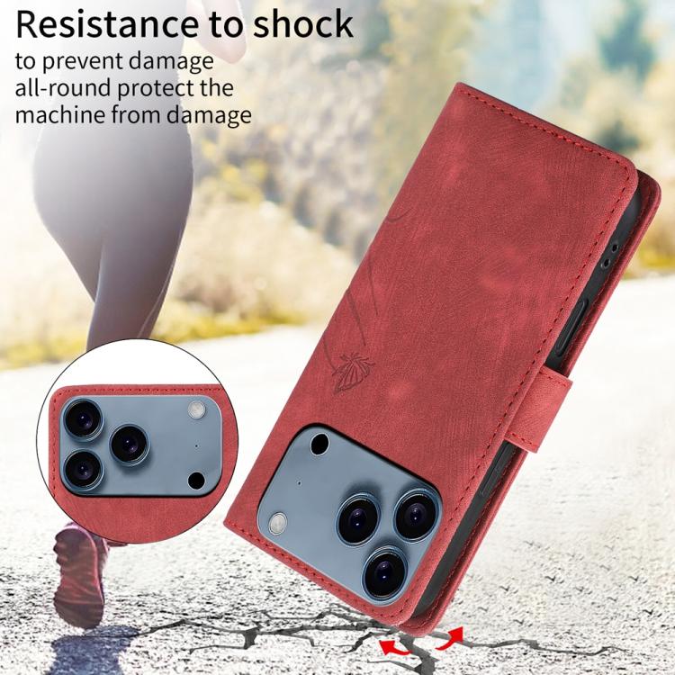 Funda de piel con relieve de mariposa y orquídea para iPhone 17 Pro Max (roja)