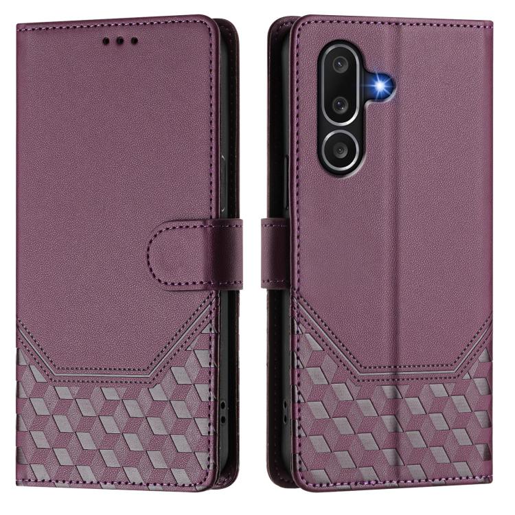 Funda de piel con relieve de panal RFID para Samsung Galaxy M56 5G (violeta)
