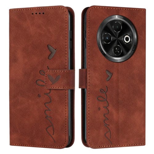 Funda de Piel con Relieve en Forma de Corazón para Tecno Spark 30C (Marrón)