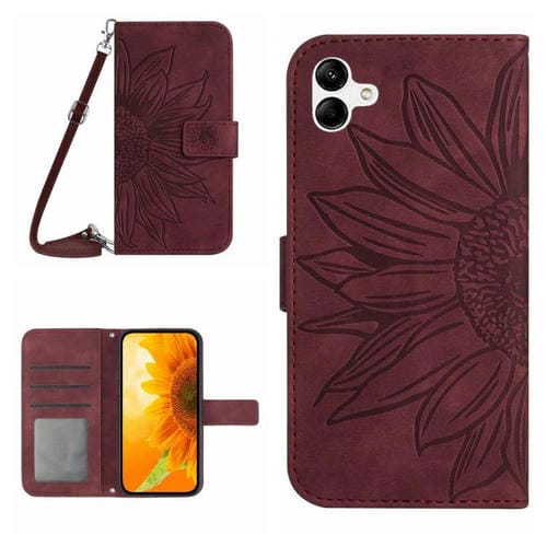 Funda de Piel con Tapa y Cordón Samsung Galaxy A06 5G Diseño Girasol (Rojo Vino)