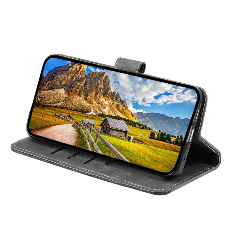Funda de Piel de Becerro para Motorola Moto G05 con Textura y Costuras Efecto Uñas (Gris)