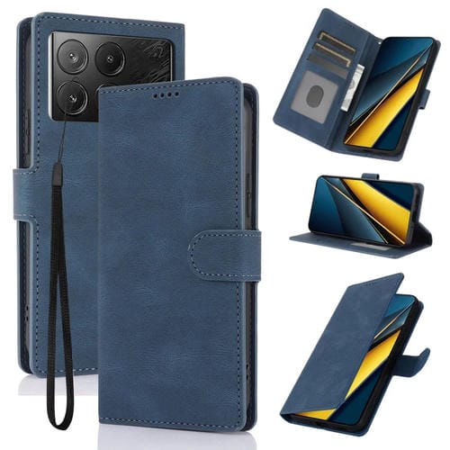 Funda de Piel de Becerro con Textura de Piel de Fantasía para Xiaomi Poco X6 Pro 5G (Azul)