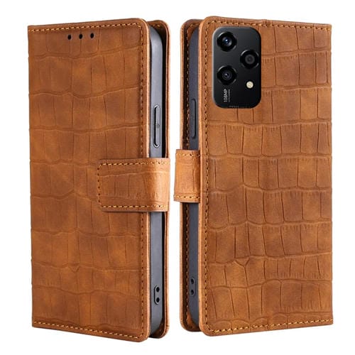 Funda de Piel de Cocodrilo con Cierre Magnético y Tacto Global para Honor 200 Lite 5G (Marrón)