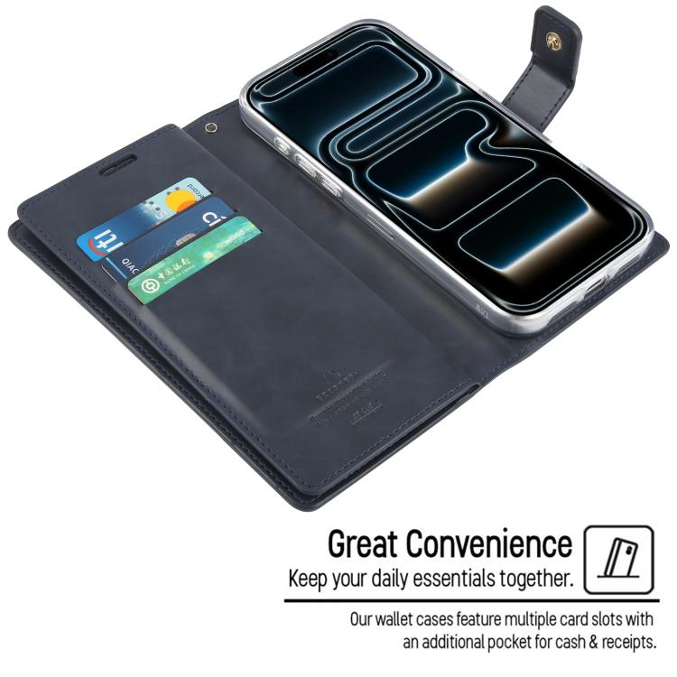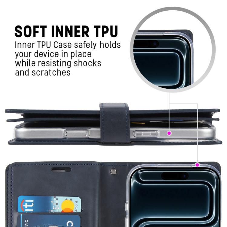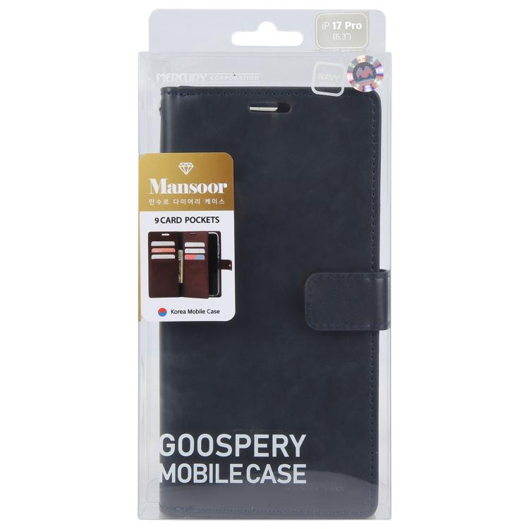 Funda de piel GOOSPERY MANSOOR DIARY para iPhone 17 Pro con 9 ranuras para tarjetas (Azul oscuro)